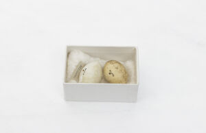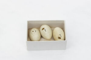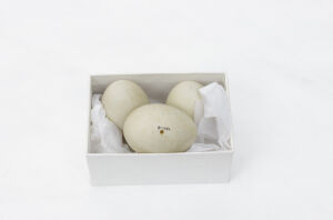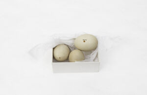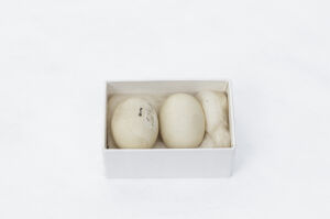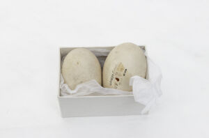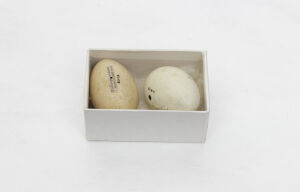 One of three eggs from a Canada Goose. One of the eggs was destroyed in the Broomfield House fire, 1984
