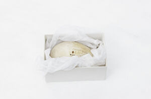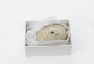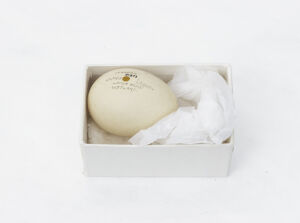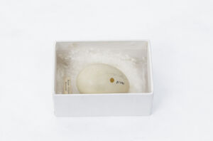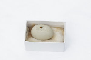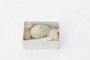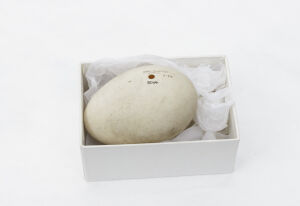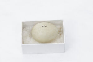 One of two eggs from a Bar-headed Goose. The other egg was destroyed in the Broomfield House fire, 1984