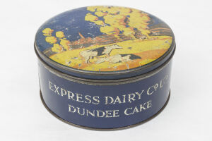 Circular tin for 'Express Dairy Co. Ltd Dundee Cake'