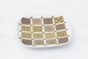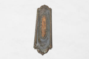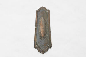 Copper door plate washed in black ‘japanning’ style with raised pattern