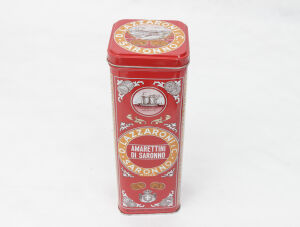 Novelty tin for Amarettini di Saronno cookies by D'Lazzaroni & C Milan