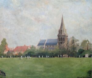 Oil painting entitled 'Christ Church and Walker Cricket Ground'