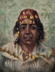 Oil painting depicting a portrait of a woman