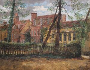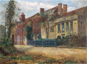 Oil painting entitled 'Charles Lamb's Cottage, Enfield'