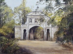 Oil painting entitled 'Temple Bar at Theobalds'