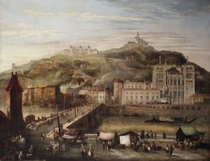 Oil painting depicting a townscape in Lyon