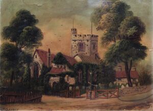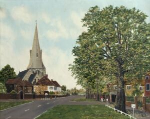 Oil painting entitled 'Chingford Parish Church'
