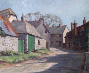 Oil painting entitled 'West Street, Corfe Castle'