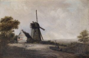Framed oil painting entitled 'Windmill, Windmill Hill, Enfield', by James Maull