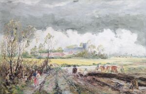Oil painting entitled 'Church Field, Edmonton'