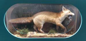 Mounted Fox and Pigeon, originally displayed in the Natural History Gallery at Broomfield House Museum