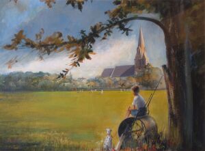 Oil painting entitled 'Christ Church and Walker Cricket Ground'
