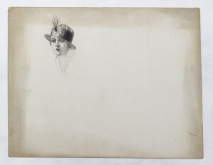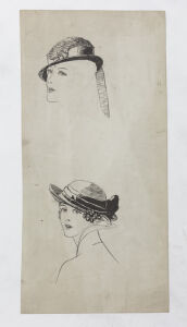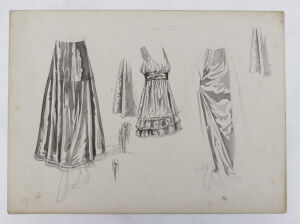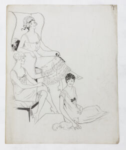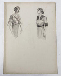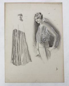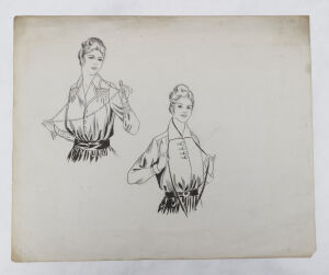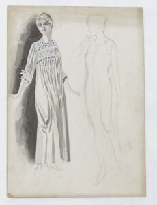 Two fashion illustrations showing a woman in a lace nightgown, and an outline of a woman in profile
